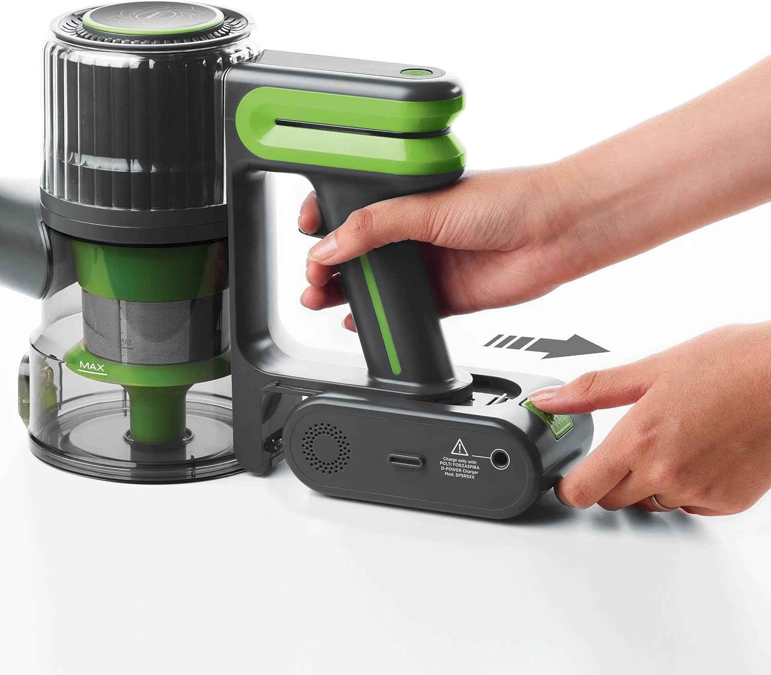 Trasforma con un semplice gesto la tua scopa elettrica in un pratico aspirapolvere portatile per aspirare tutte le superfici.